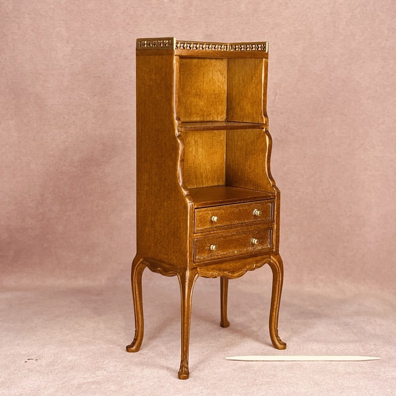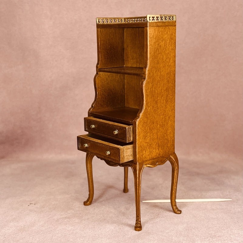 Miniature hylde i valnøddetræ med 2 skuffer 1:12